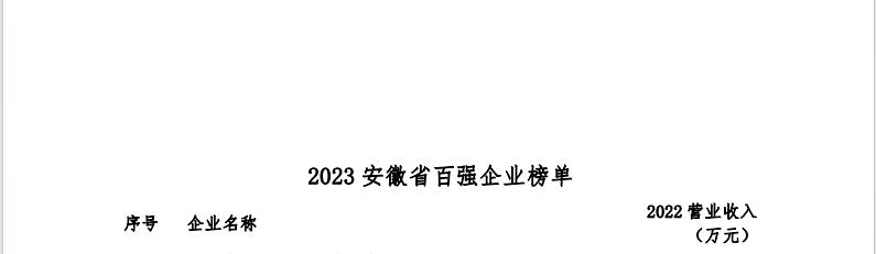 2023年11月22日,安徽省企業(yè)聯(lián)合會、安徽省企業(yè)家聯(lián)合會舉辦了2023安徽百強企業(yè)發(fā)布會暨企業(yè)家論壇,現(xiàn)場發(fā)布了“2023安徽省百強企業(yè)”榜單,及“2023安徽省制造業(yè)百強企業(yè) ”“2023安徽省服務(wù)業(yè)百強企業(yè)”榜單。該活動迄今已經(jīng)連續(xù)開展十九屆,基本囊括了安徽營收規(guī)模排在前列的各類企業(yè)。