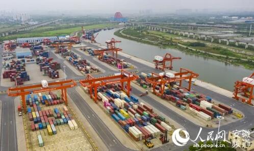 安徽省港航集團(tuán)旗下的合肥港國際集裝箱碼頭。人民網(wǎng) 張俊攝