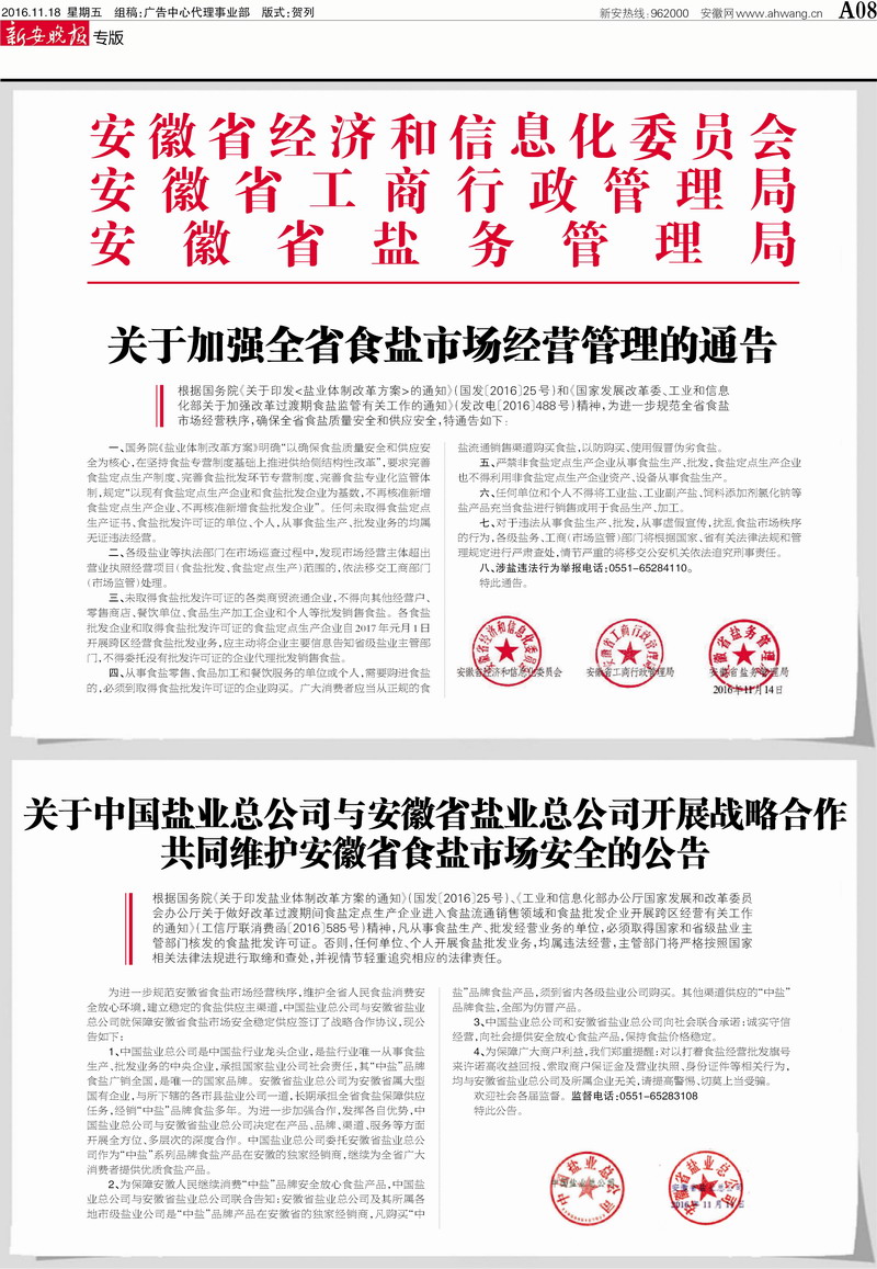 《新安晚報》:假鹽窩點“東躲西藏”仍被端——我省開展制販假鹽專項整治行動,破獲公安部督辦假鹽案件