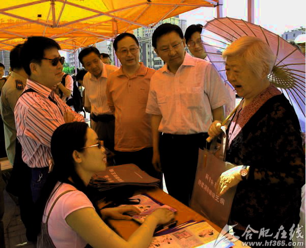 上圖為合肥市民正在向執(zhí)法人員咨詢?nèi)绾伟踩名}的常識(shí)問(wèn)題