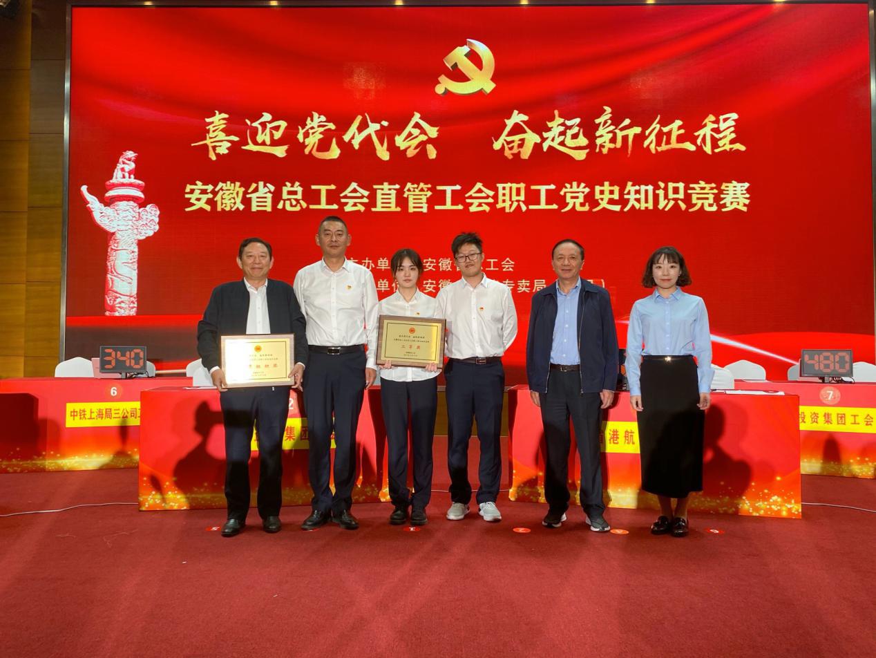 10月19日,在安徽省總工會舉辦的省總直管工會“喜迎黨代會 奮起新征程”黨史知識競賽上,由環(huán)境集團周俊、順朝公司姚旋、酒店公司吳林組成的省鹽業(yè)集團工會代表隊以第2名的成績榮獲二等獎,集團工會獲優(yōu)秀組織獎,充分展示了集團公司黨史學習教育成果和良好形象風采。