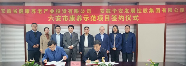 省健康養(yǎng)老產業(yè)投資有限公司、安徽華安發(fā)展控股集團相關負責人見證簽約儀式。